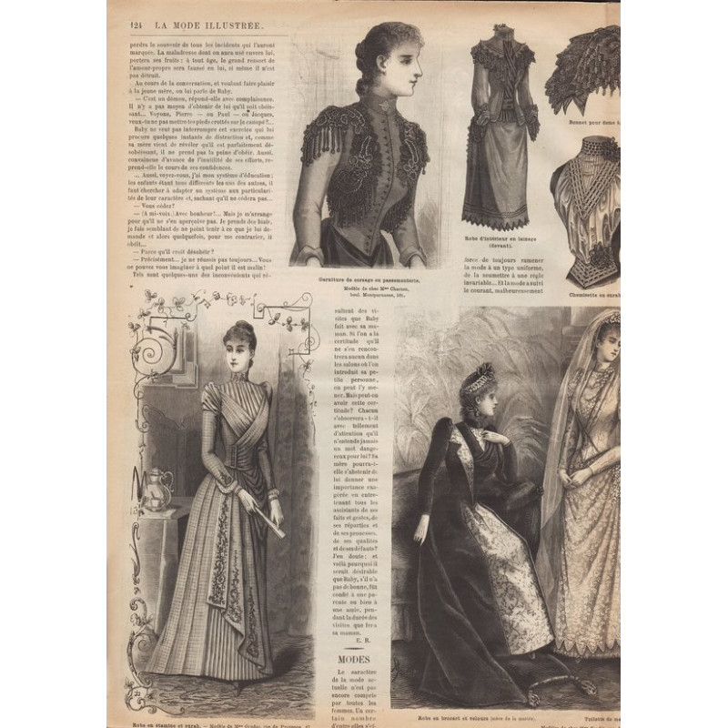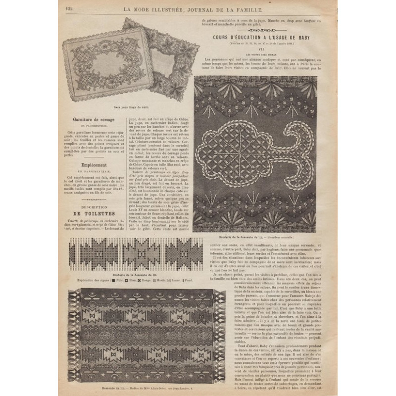 Chaque magazine présentait des modèles de robes , de lingerie , de corsets , mais aussi des vêtements d’enfants ou habits de poupées , avec de magnifiques gravures et les explications des modèles .