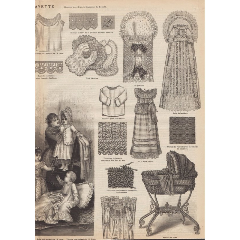 Chaque magazine présentait des modèles de robes , de lingerie , de corsets , mais aussi des vêtements d’enfants ou habits de poupées , avec de magnifiques gravures et les explications des modèles .