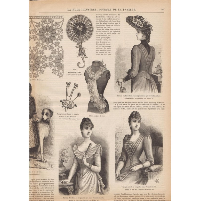 Chaque magazine présentait des modèles de robes , de lingerie , de corsets , mais aussi des vêtements d’enfants ou habits de poupées , avec de magnifiques gravures et les explications des modèles .