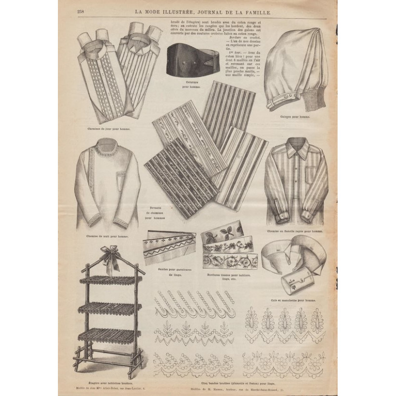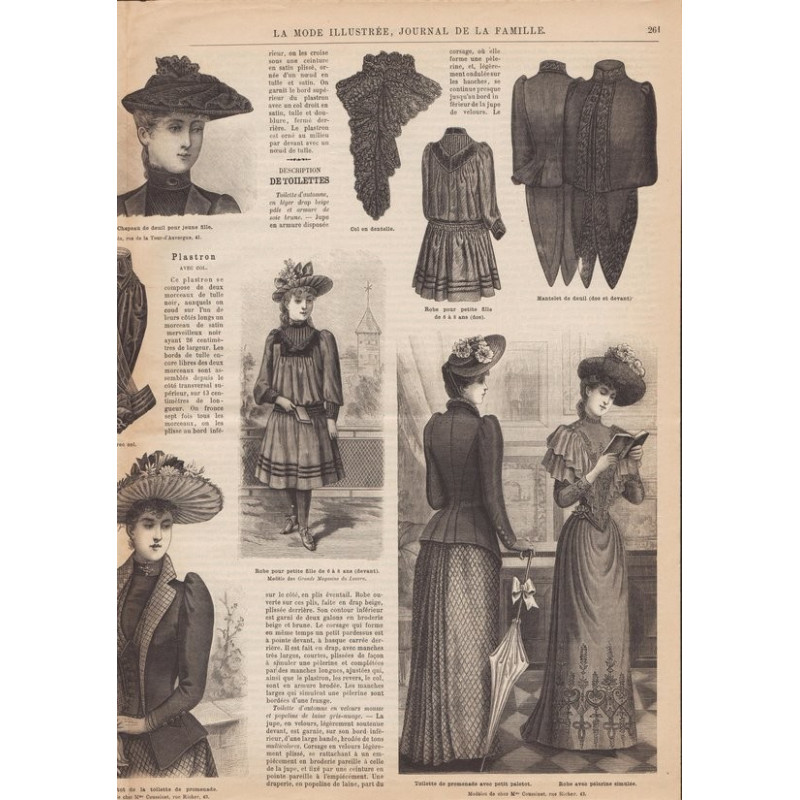 Chaque magazine présentait des modèles de robes , de lingerie , de corsets , mais aussi des vêtements d’enfants ou habits de poupées , avec de magnifiques gravures et les explications des modèles .