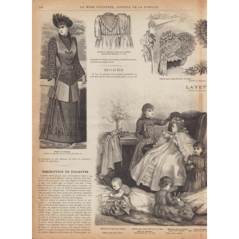 Chaque magazine présentait des modèles de robes , de lingerie , de corsets , mais aussi des vêtements d’enfants ou habits de poupées , avec de magnifiques gravures et les explications des modèles .