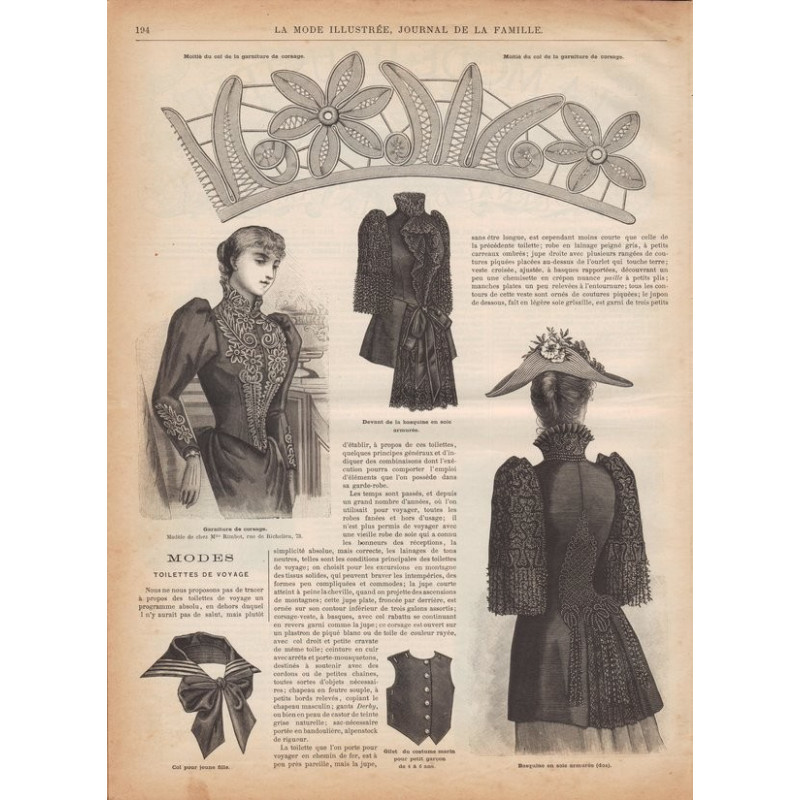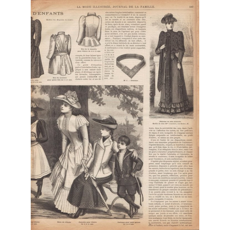 Chaque magazine présentait des modèles de robes , de lingerie , de corsets , mais aussi des vêtements d’enfants ou habits de poupées , avec de magnifiques gravures et les explications des modèles .