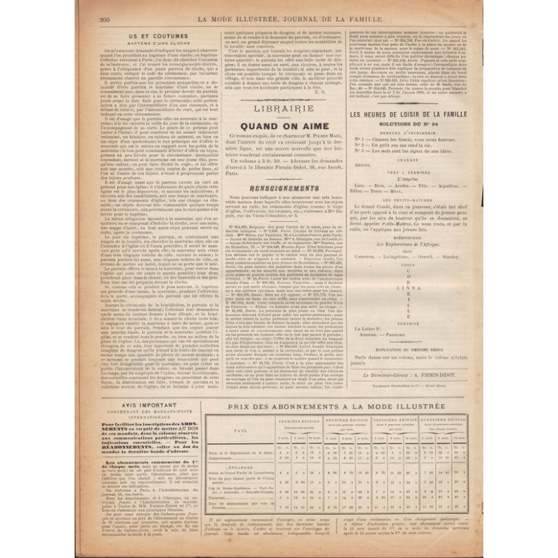 La Mode illustrée , publié de 1860 à 1937, est l’un des magazines de mode les plus connus à cette époque. Il a été publié entre 1860 et 1937.