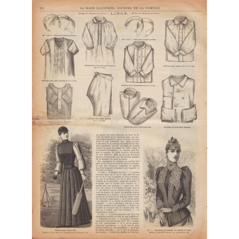 Chaque magazine présentait des modèles de robes , de lingerie , de corsets , mais aussi des vêtements d’enfants ou habits de poupées , avec de magnifiques gravures et les explications des modèles .