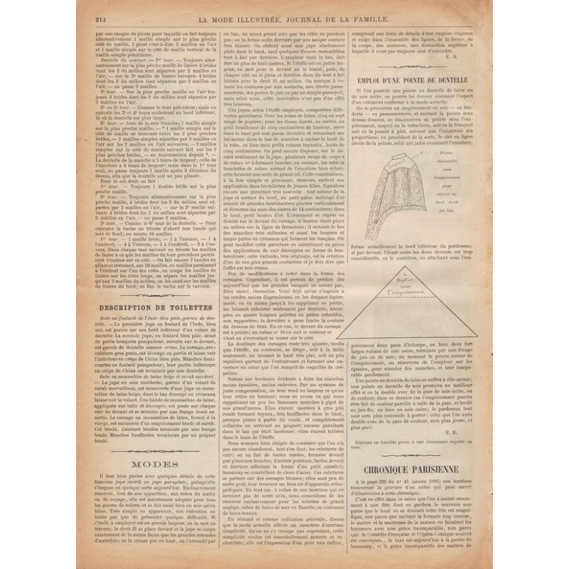 La Mode Illustrée paraissait toutes les semaines, et était accompagnée d’une planche de patrons tous les quinze jours en moyenne.