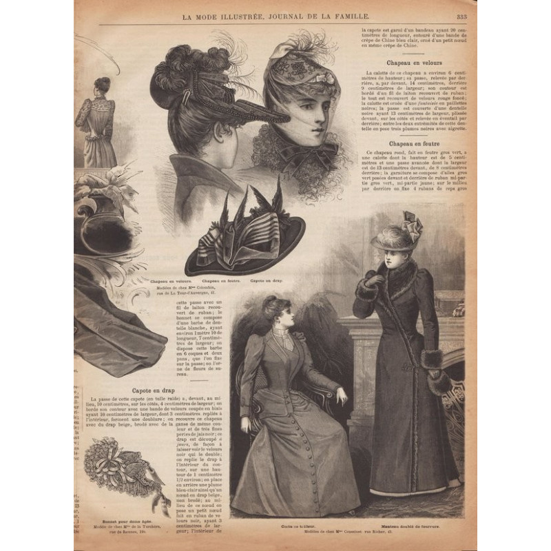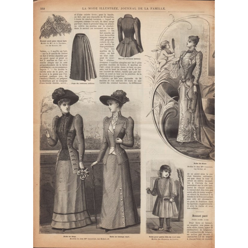 Chaque magazine présentait des modèles de robes , de lingerie , de corsets , mais aussi des vêtements d’enfants ou habits de poupées , avec de magnifiques gravures et les explications des modèles .