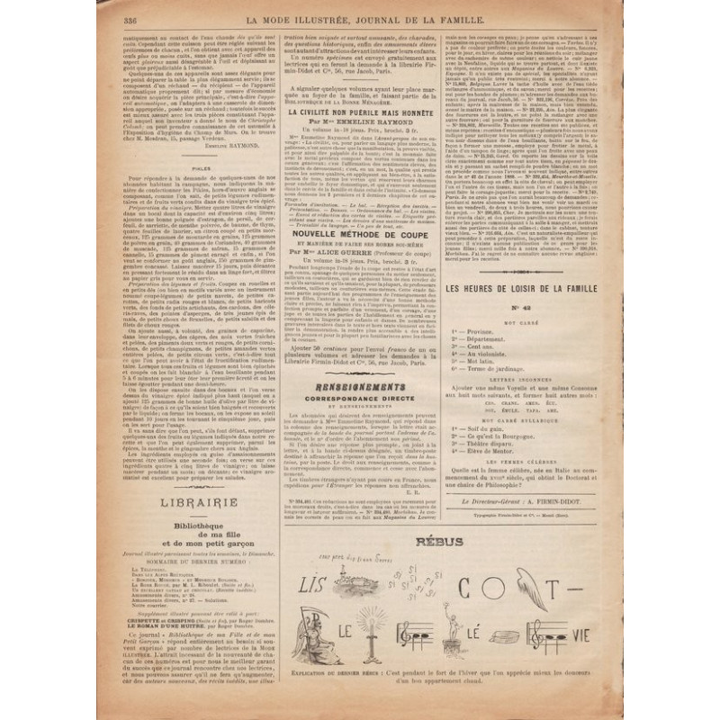 La Mode illustrée , publié de 1860 à 1937, est l’un des magazines de mode les plus connus à cette époque. Il a été publié entre 1860 et 1937.