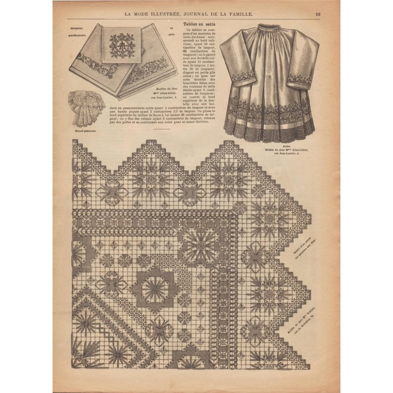 Chaque magazine présentait des modèles de robes , de lingerie , de corsets , mais aussi des vêtements d’enfants ou habits de poupées , avec de magnifiques gravures et les explications des modèles .