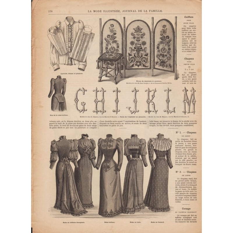 Chaque magazine présentait des modèles de robes , de lingerie , de corsets , mais aussi des vêtements d’enfants ou habits de poupées , avec de magnifiques gravures et les explications des modèles .
