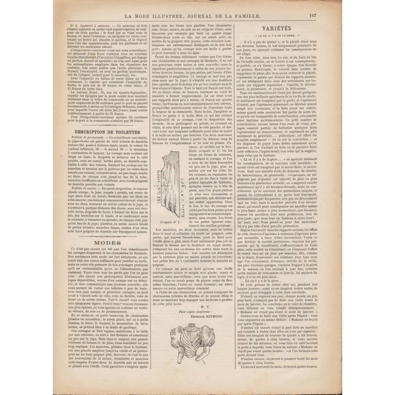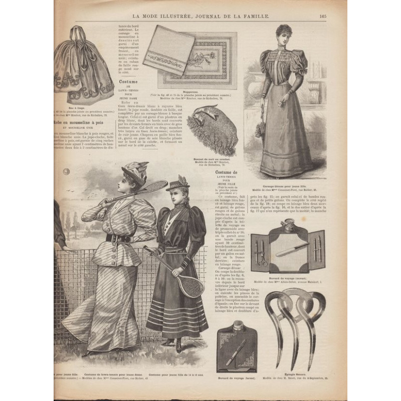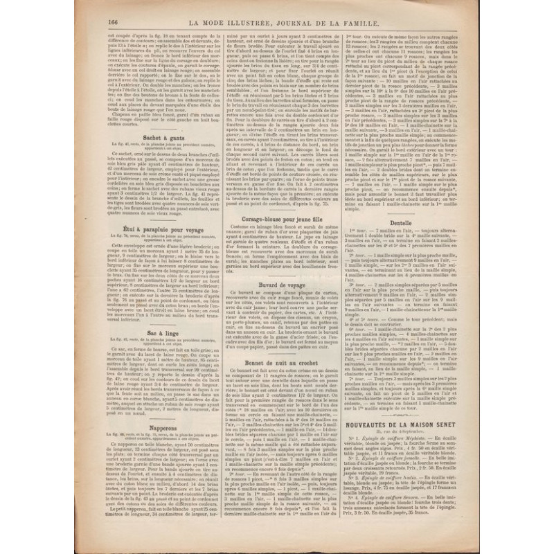 Chaque magazine présentait des modèles de robes , de lingerie , de corsets , mais aussi des vêtements d’enfants ou habits de poupées , avec de magnifiques gravures et les explications des modèles .