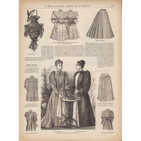 Chaque magazine présentait des modèles de robes , de lingerie , de corsets , mais aussi des vêtements d’enfants ou habits de poupées , avec de magnifiques gravures et les explications des modèles .