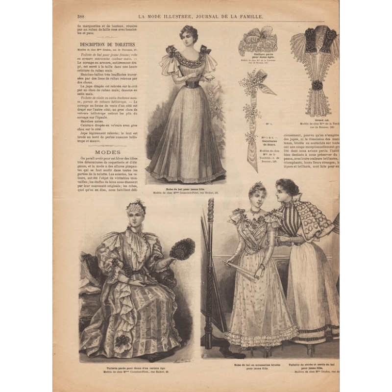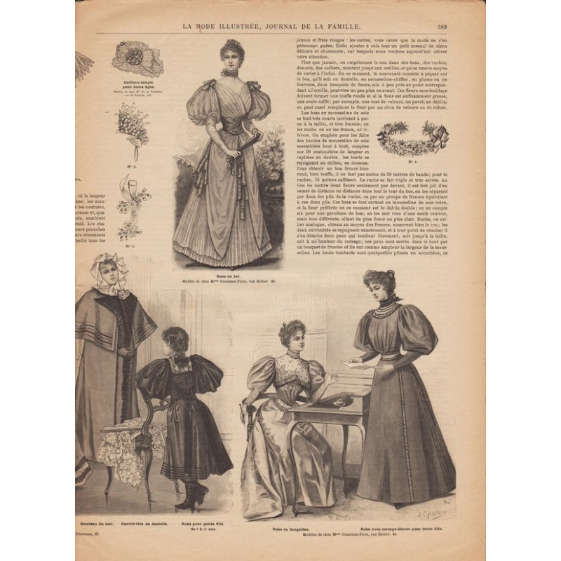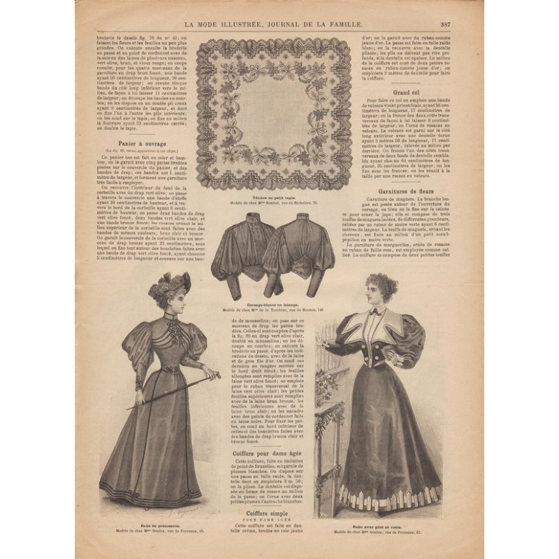 Chaque magazine présentait des modèles de robes , de lingerie , de corsets , mais aussi des vêtements d’enfants ou habits de poupées , avec de magnifiques gravures et les explications des modèles .