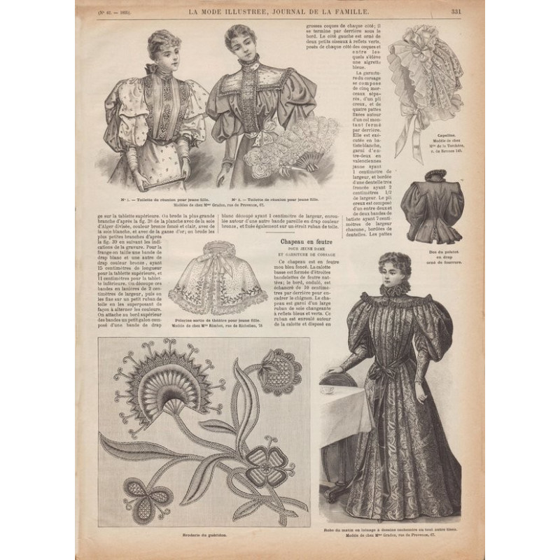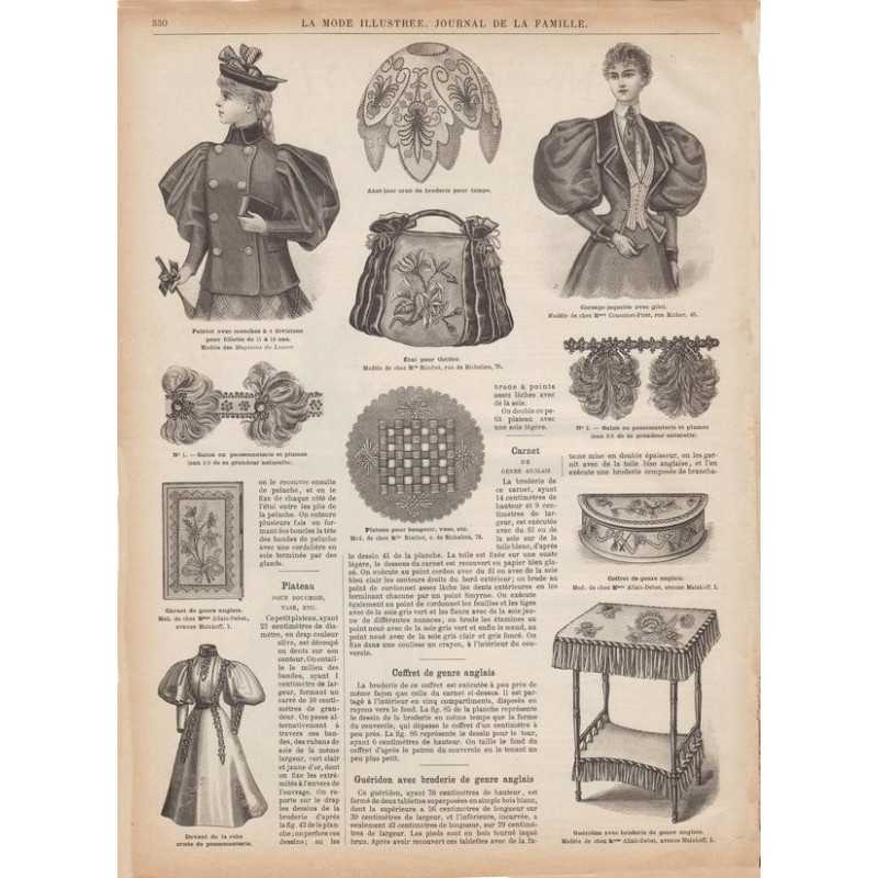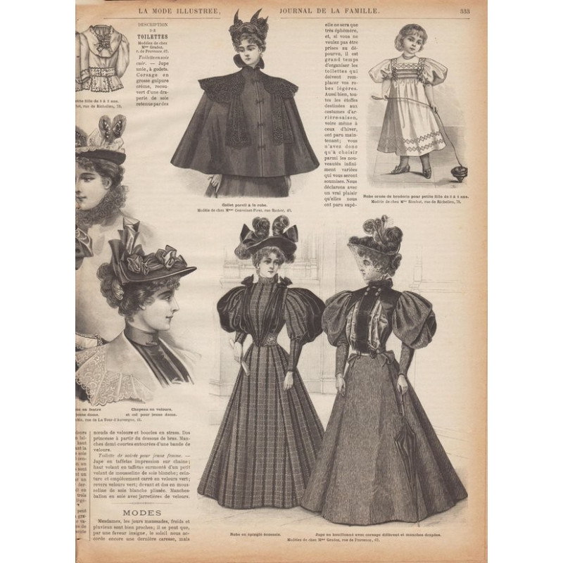 Chaque magazine présentait des modèles de robes , de lingerie , de corsets , mais aussi des vêtements d’enfants ou habits de poupées , avec de magnifiques gravures et les explications des modèles .
