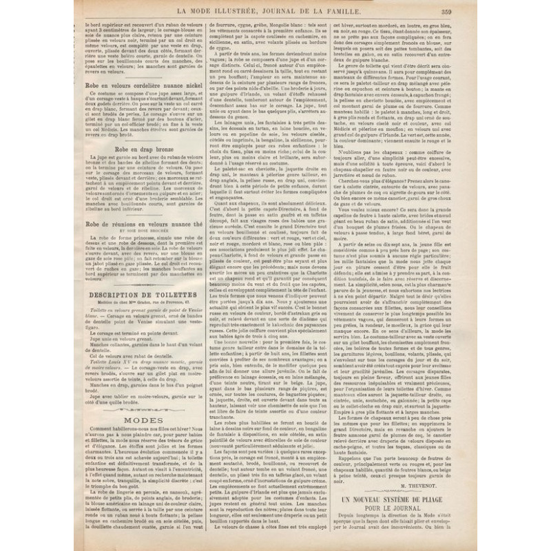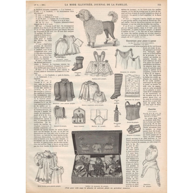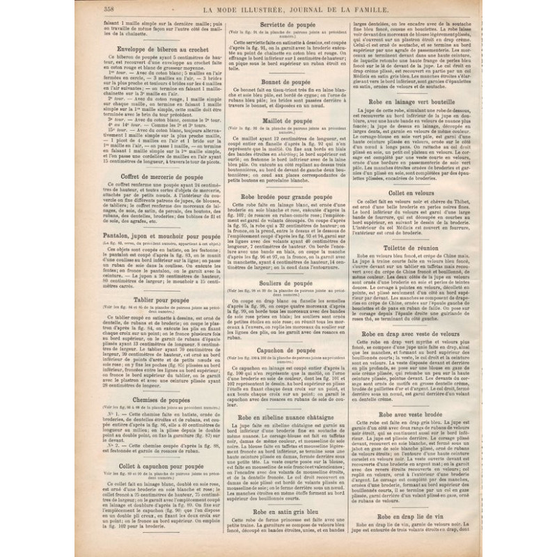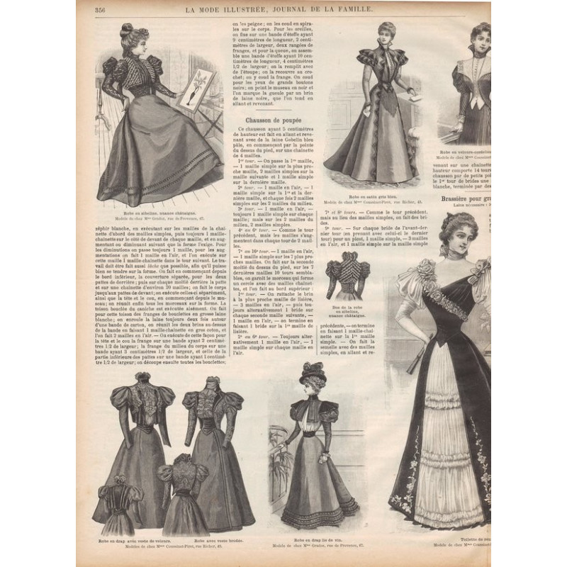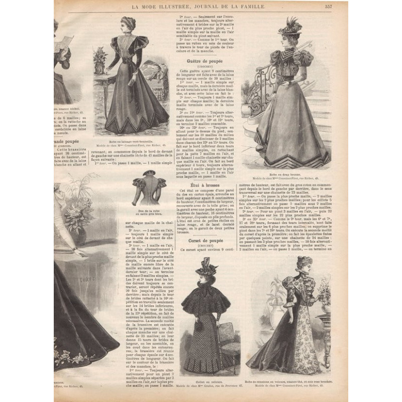 Chaque magazine présentait des modèles de robes , de lingerie , de corsets , mais aussi des vêtements d’enfants ou habits de poupées , avec de magnifiques gravures et les explications des modèles .