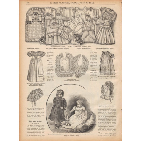 Chaque magazine présentait des modèles de robes , de lingerie , de corsets , mais aussi des vêtements d’enfants ou habits de poupées , avec de magnifiques gravures et les explications des modèles .