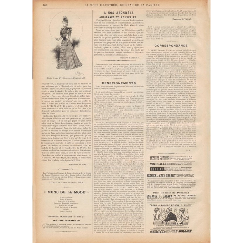 La Mode Illustrée paraissait toutes les semaines, et était accompagnée d’une planche de patrons tous les quinze jours en moyenne.