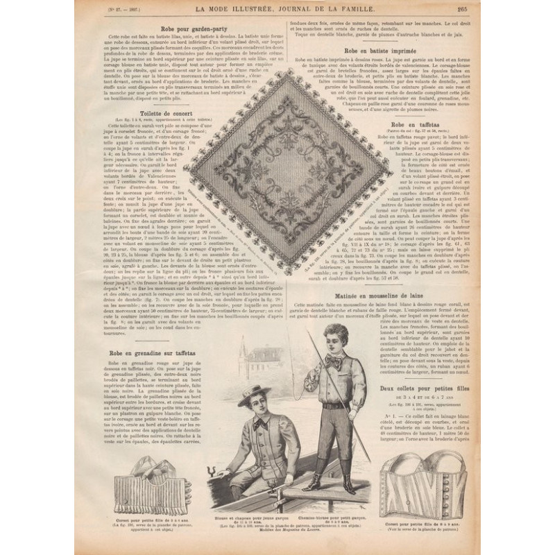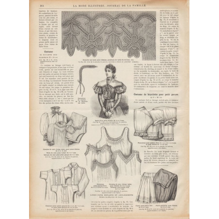 Chaque magazine présentait des modèles de robes , de lingerie , de corsets , mais aussi des vêtements d’enfants ou habits de poupées , avec de magnifiques gravures et les explications des modèles .