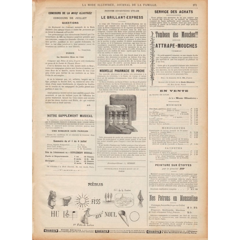 La Mode Illustrée paraissait toutes les semaines, et était accompagnée d’une planche de patrons tous les quinze jours en moyenne.