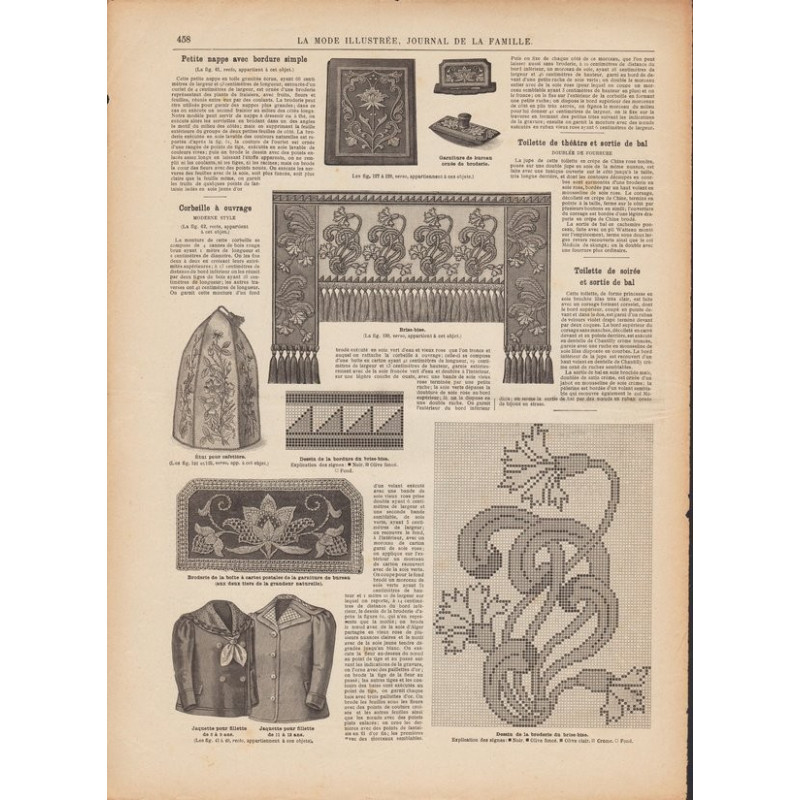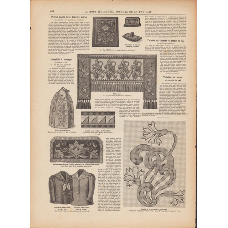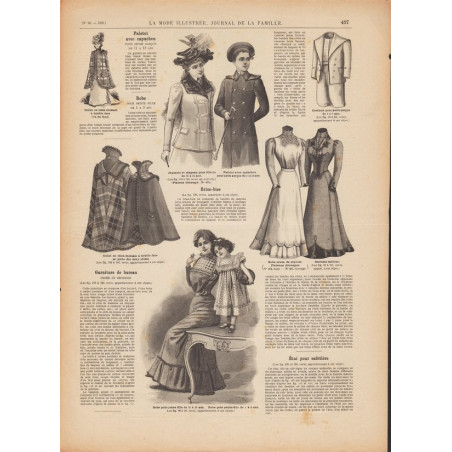 Chaque magazine présentait des modèles de robes , de lingerie , de corsets , mais aussi des vêtements d’enfants ou habits de poupées , avec de magnifiques gravures et les explications des modèles .