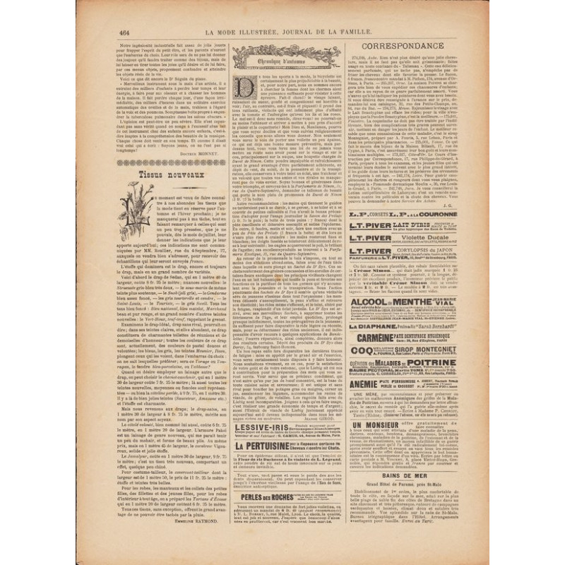 La Mode Illustrée paraissait toutes les semaines, et était accompagnée d’une planche de patrons tous les quinze jours en moyenne.