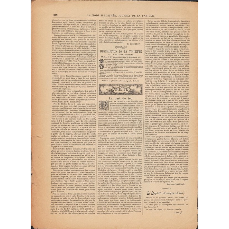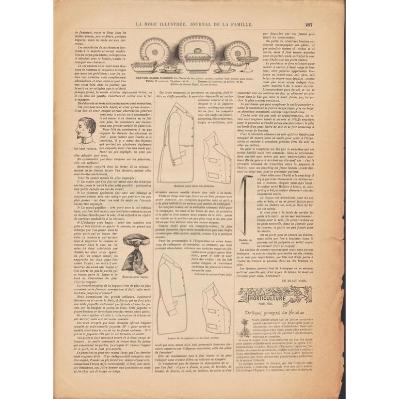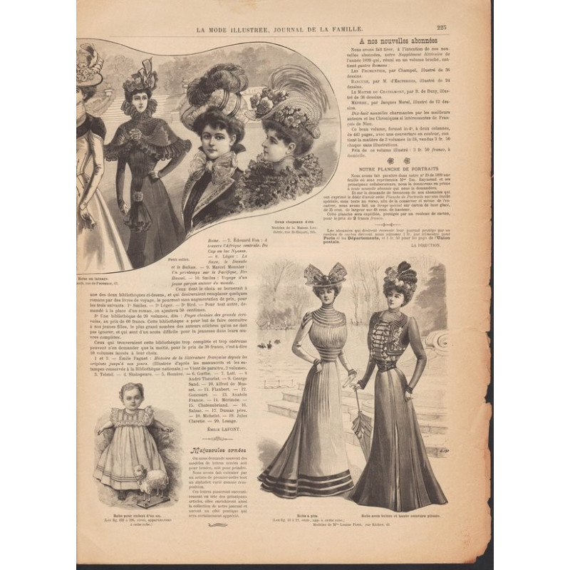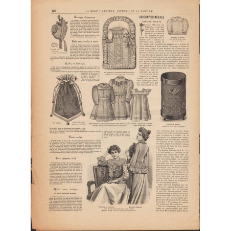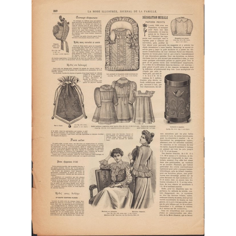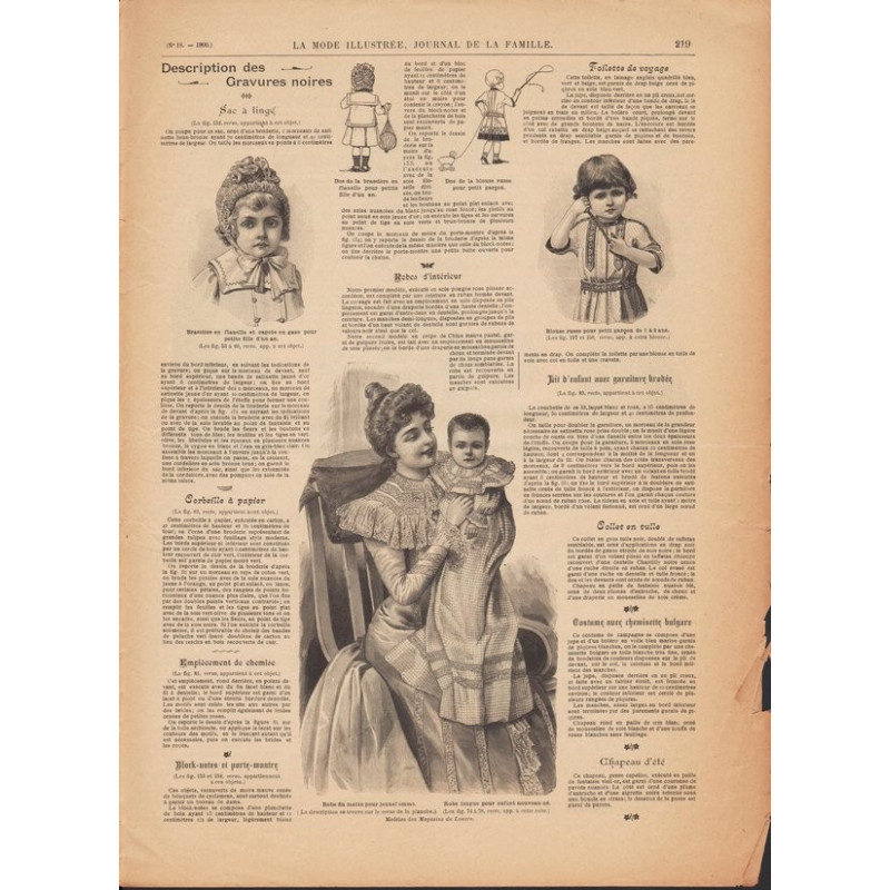 Chaque magazine présentait des modèles de robes , de lingerie , de corsets , mais aussi des vêtements d’enfants ou habits de poupées , avec de magnifiques gravures et les explications des modèles .
