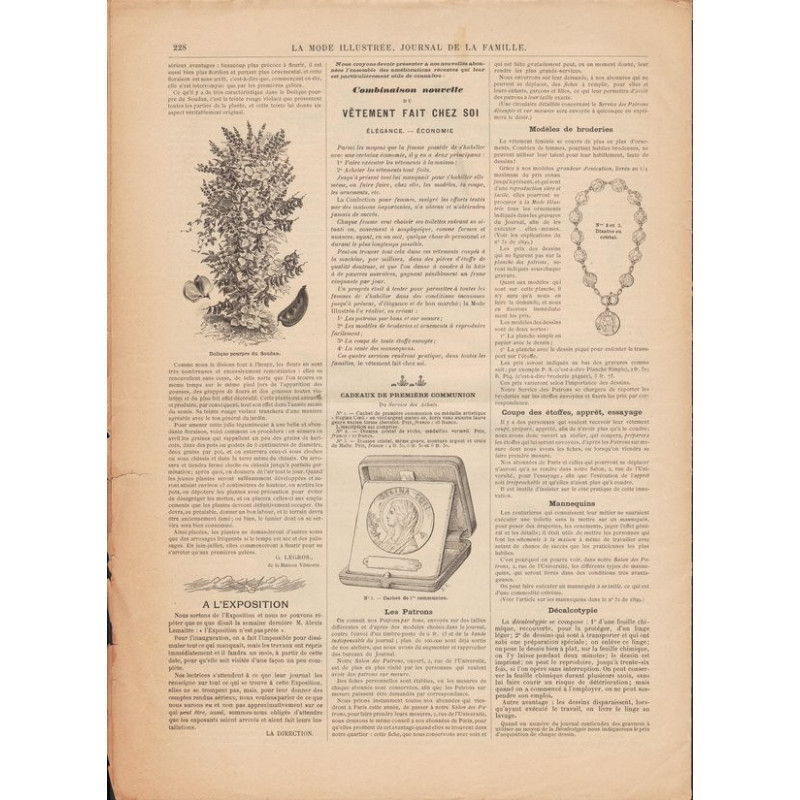La Mode Illustrée paraissait toutes les semaines, et était accompagnée d’une planche de patrons tous les quinze jours en moyenne.