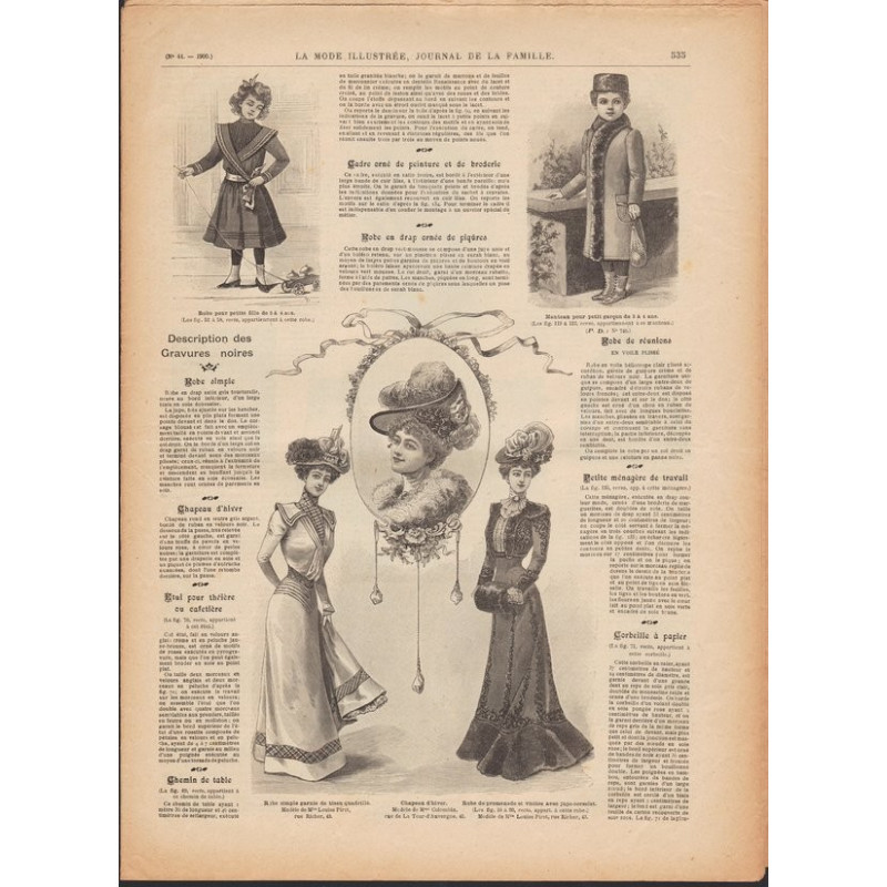 Chaque magazine présentait des modèles de robes , de lingerie , de corsets , mais aussi des vêtements d’enfants ou habits de poupées , avec de magnifiques gravures et les explications des modèles .