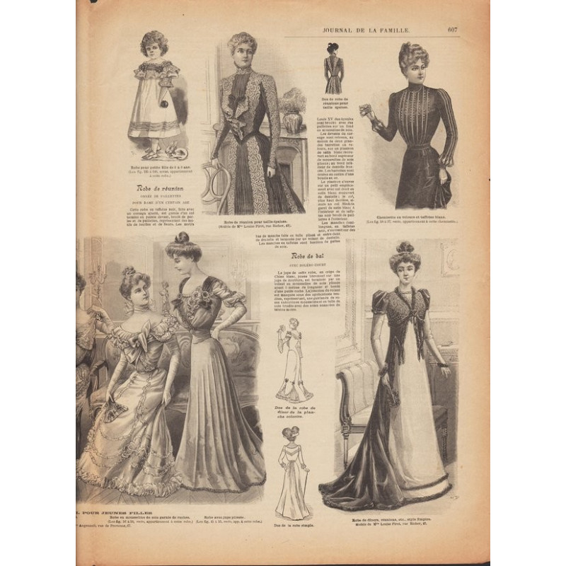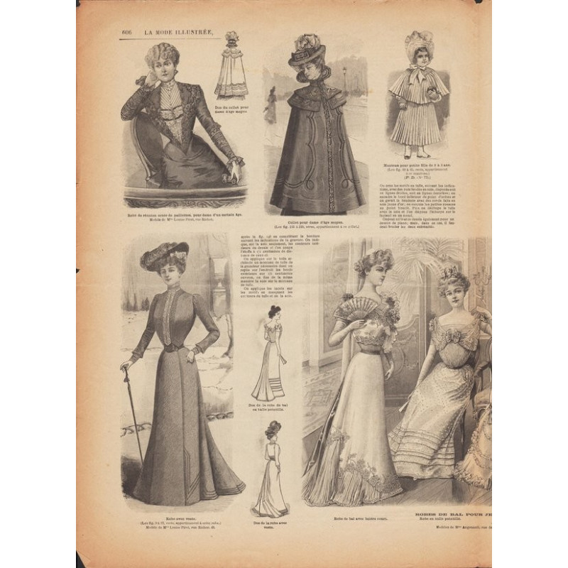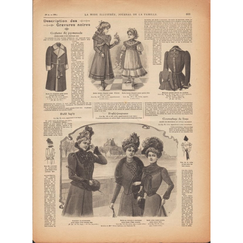 Chaque magazine présentait des modèles de robes , de lingerie , de corsets , mais aussi des vêtements d’enfants ou habits de poupées , avec de magnifiques gravures et les explications des modèles .
