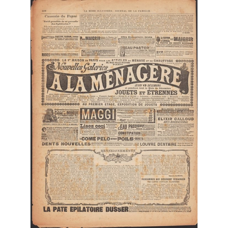 On y trouvait également des articles sur la vie de l’époque ainsi que les premières publicités.