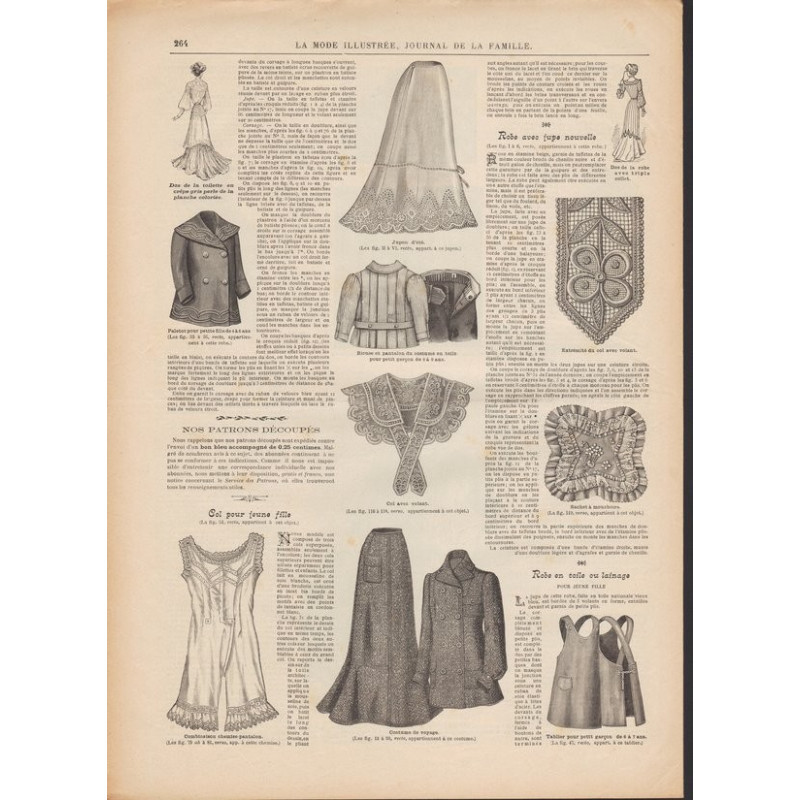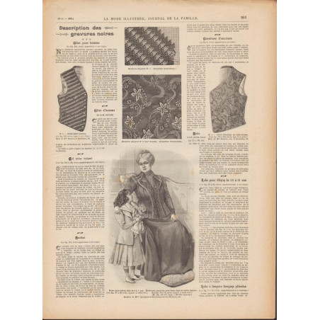 Chaque magazine présentait des modèles de robes , de lingerie , de corsets , mais aussi des vêtements d’enfants ou habits de poupées , avec de magnifiques gravures et les explications des modèles .