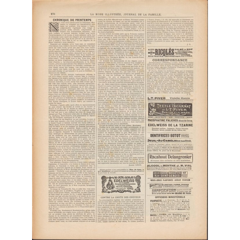La Mode Illustrée paraissait toutes les semaines, et était accompagnée d’une planche de patrons tous les quinze jours en moyenne.