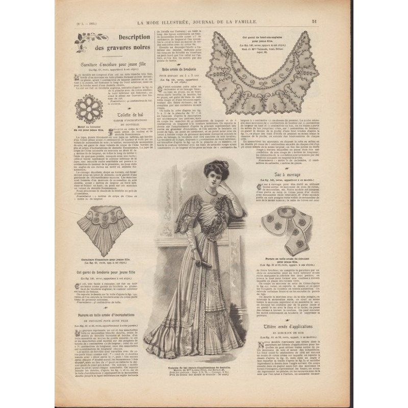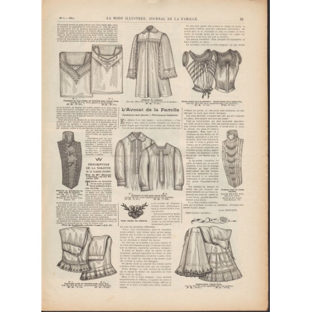 Chaque magazine présentait des modèles de robes , de lingerie , de corsets , mais aussi des vêtements d’enfants ou habits de poupées , avec de magnifiques gravures et les explications des modèles .