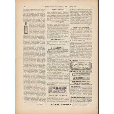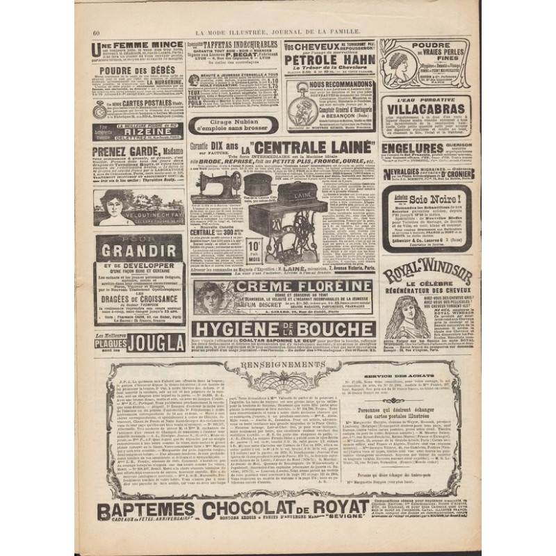 La Mode Illustrée paraissait toutes les semaines, et était accompagnée d’une planche de patrons tous les quinze jours en moyenne.
