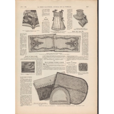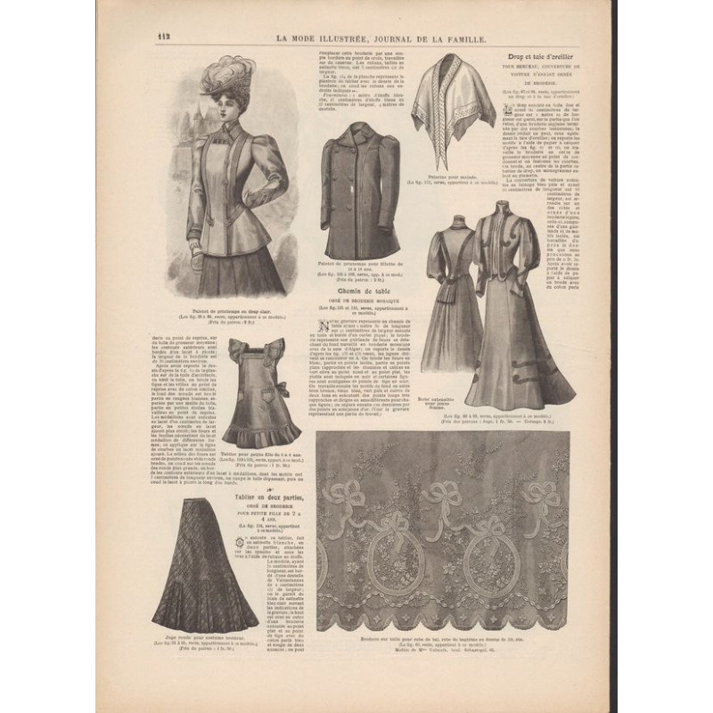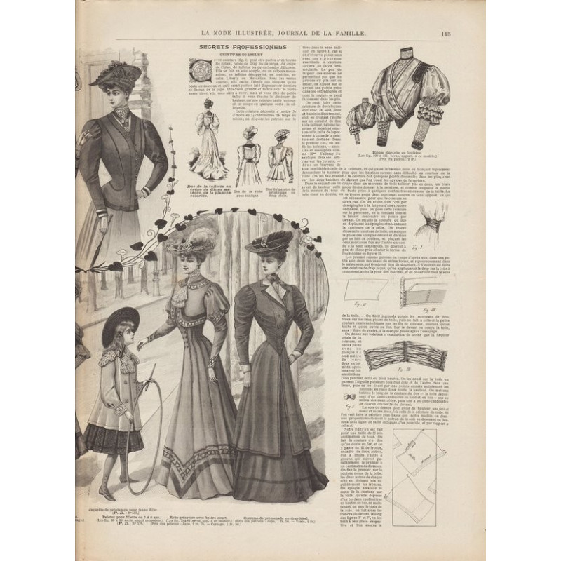 Chaque magazine présentait des modèles de robes , de lingerie , de corsets , mais aussi des vêtements d’enfants ou habits de poupées , avec de magnifiques gravures et les explications des modèles .