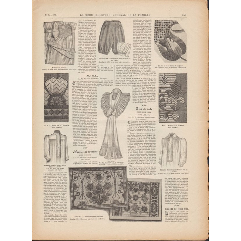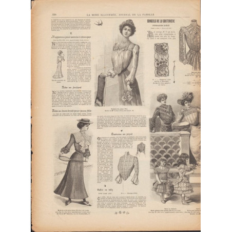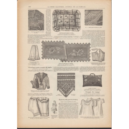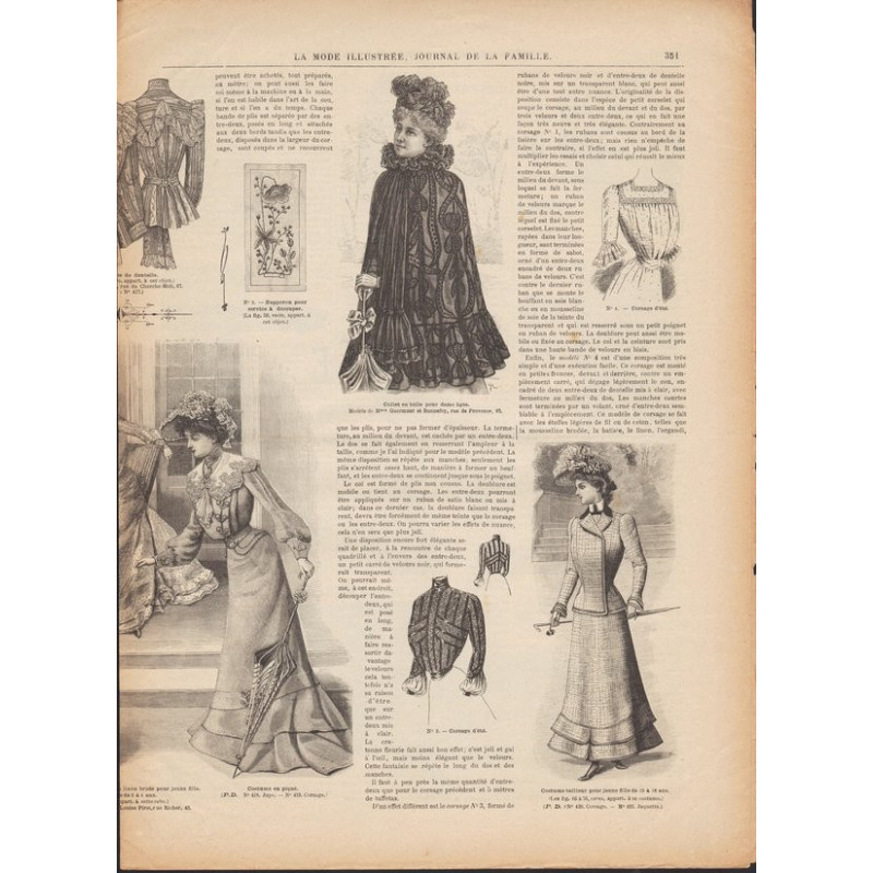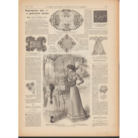 Chaque magazine présentait des modèles de robes , de lingerie , de corsets , mais aussi des vêtements d’enfants ou habits de poupées , avec de magnifiques gravures et les explications des modèles .