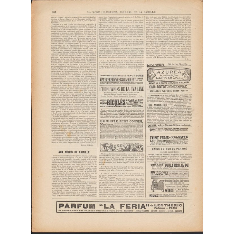 La Mode Illustrée paraissait toutes les semaines, et était accompagnée d’une planche de patrons tous les quinze jours en moyenne.
