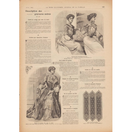 Chaque magazine présentait des modèles de robes , de lingerie , de corsets , mais aussi des vêtements d’enfants ou habits de poupées , avec de magnifiques gravures et les explications des modèles .