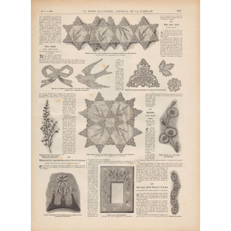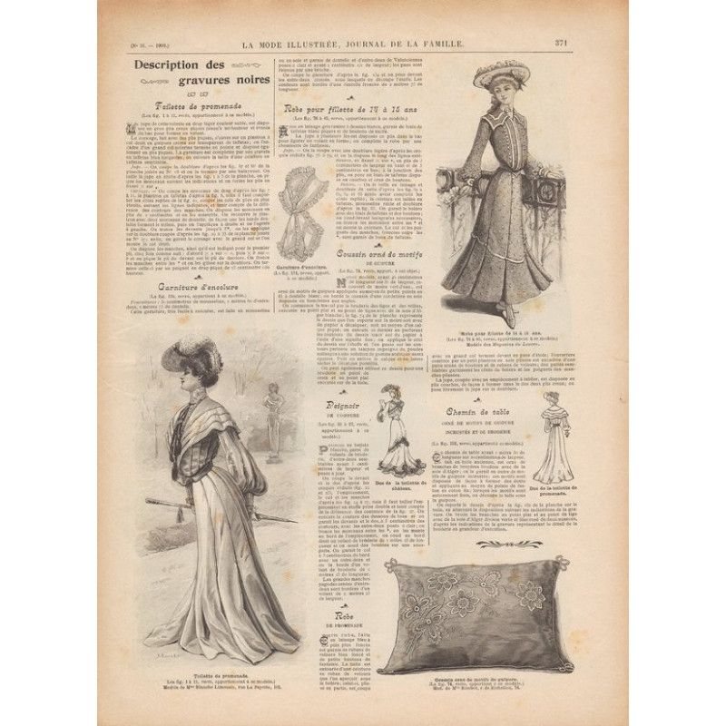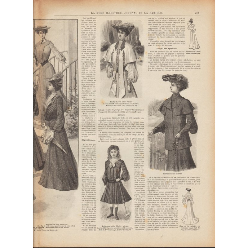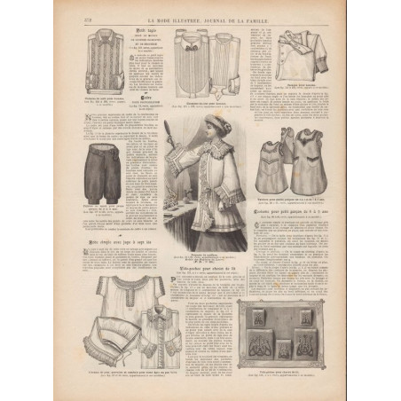 Chaque magazine présentait des modèles de robes , de lingerie , de corsets , mais aussi des vêtements d’enfants ou habits de poupées , avec de magnifiques gravures et les explications des modèles .