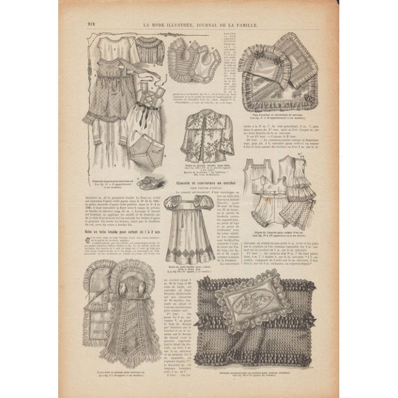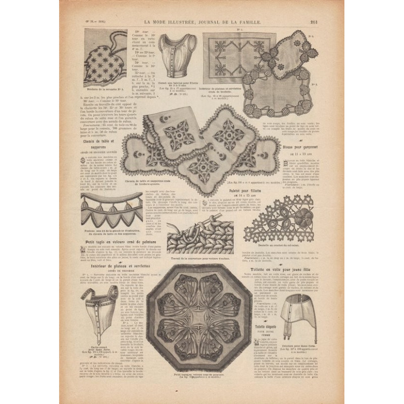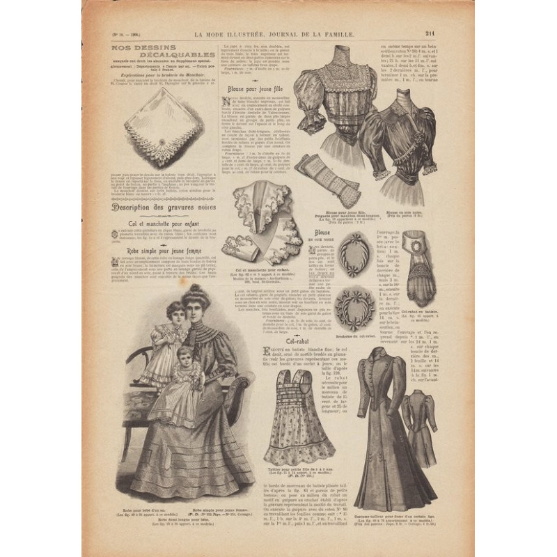 Chaque magazine présentait des modèles de robes , de lingerie , de corsets , mais aussi des vêtements d’enfants ou habits de poupées , avec de magnifiques gravures et les explications des modèles .