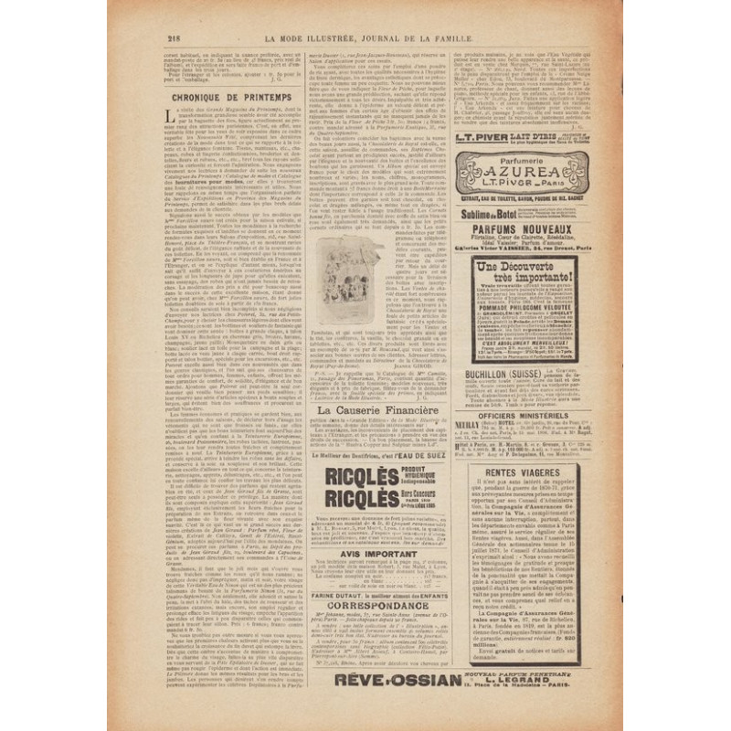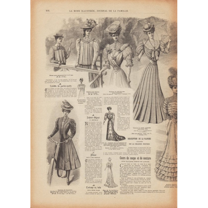 La Mode Illustrée paraissait toutes les semaines, et était accompagnée d’une planche de patrons tous les quinze jours en moyenne.