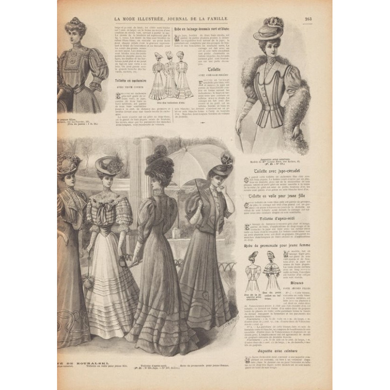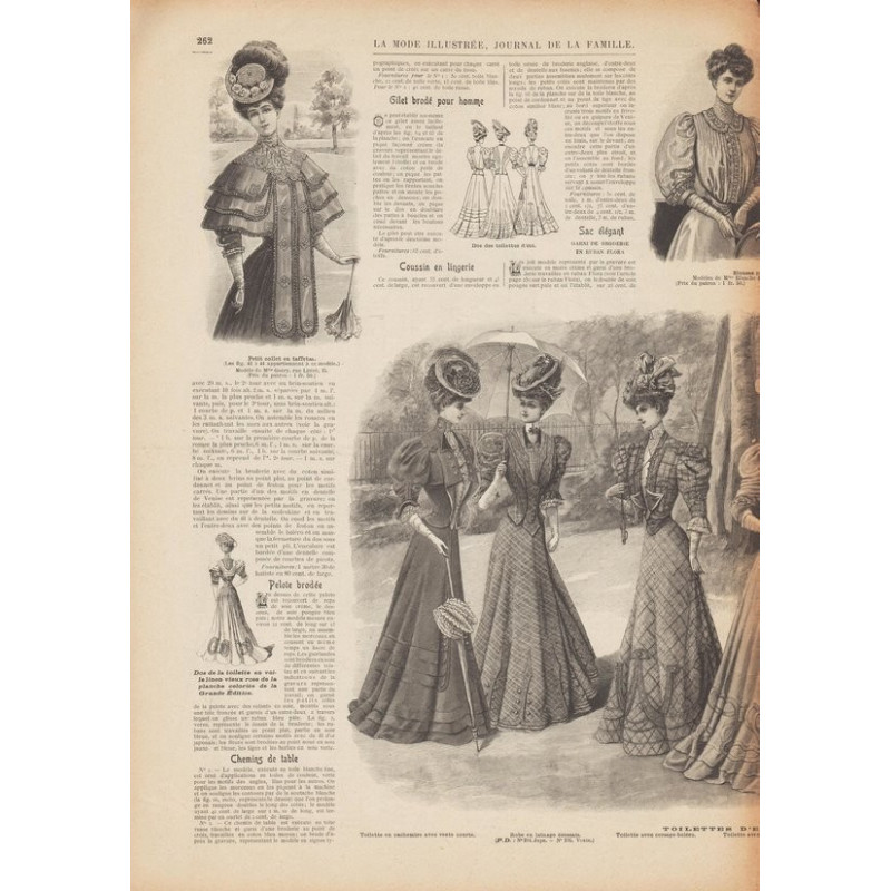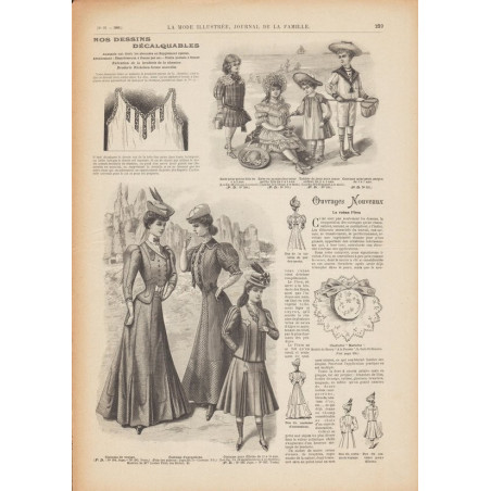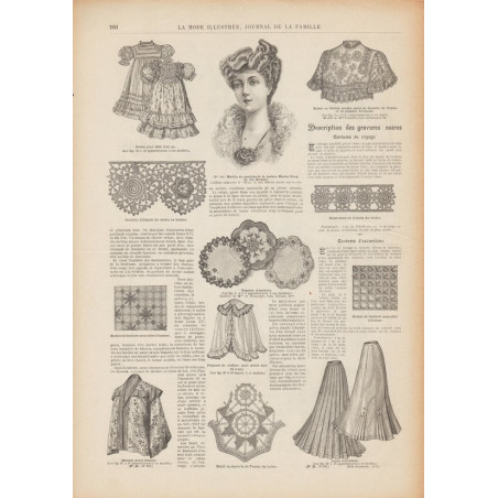 Chaque magazine présentait des modèles de robes , de lingerie , de corsets , mais aussi des vêtements d’enfants ou habits de poupées , avec de magnifiques gravures et les explications des modèles .