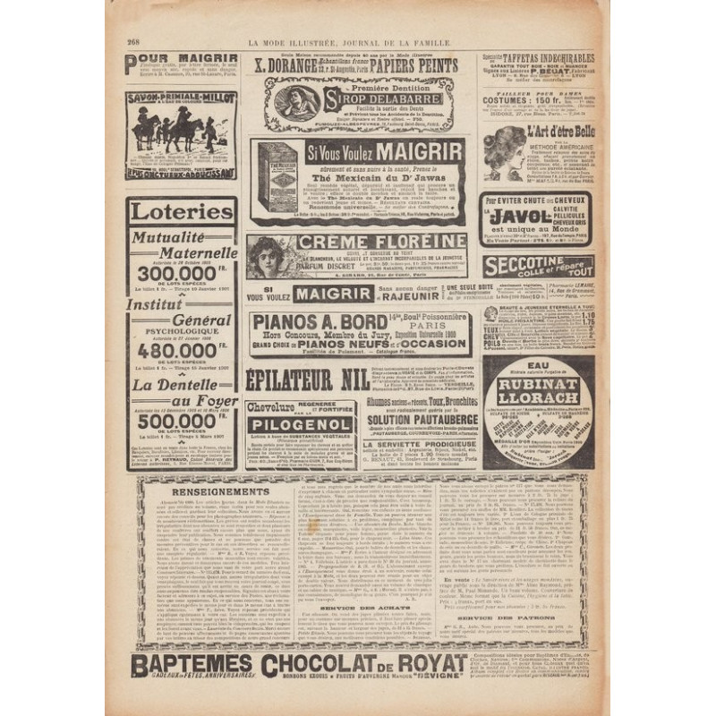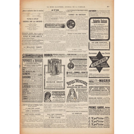 La Mode Illustrée paraissait toutes les semaines, et était accompagnée d’une planche de patrons tous les quinze jours en moyenne.