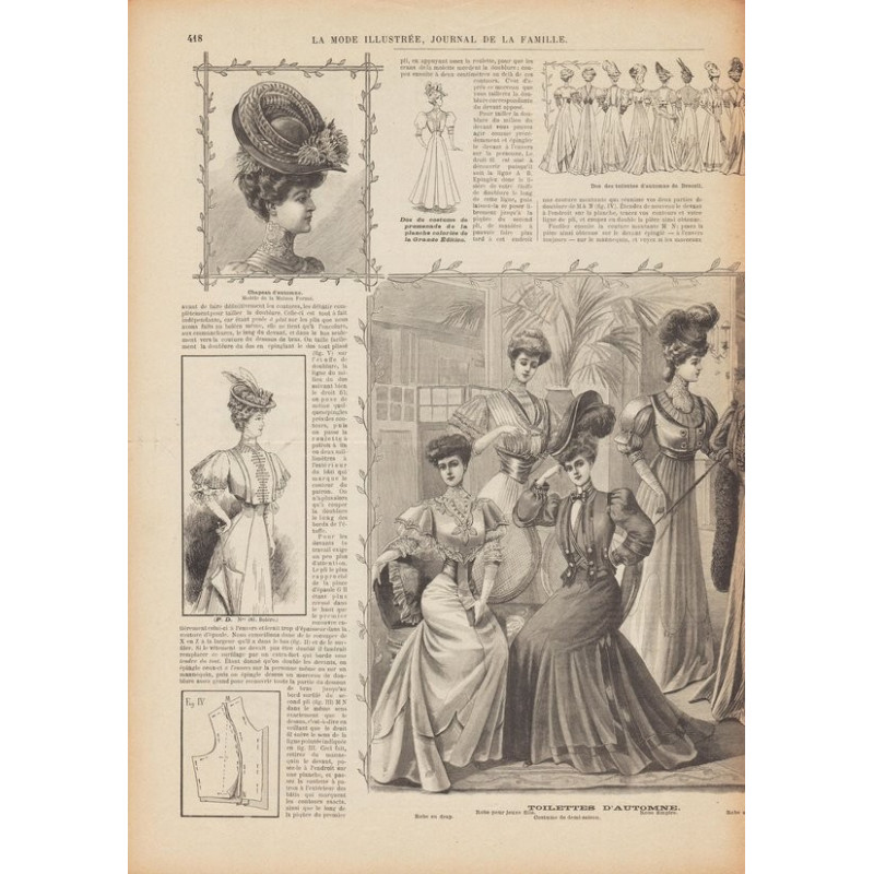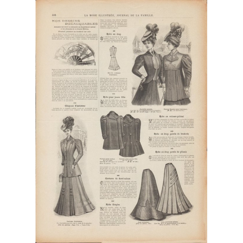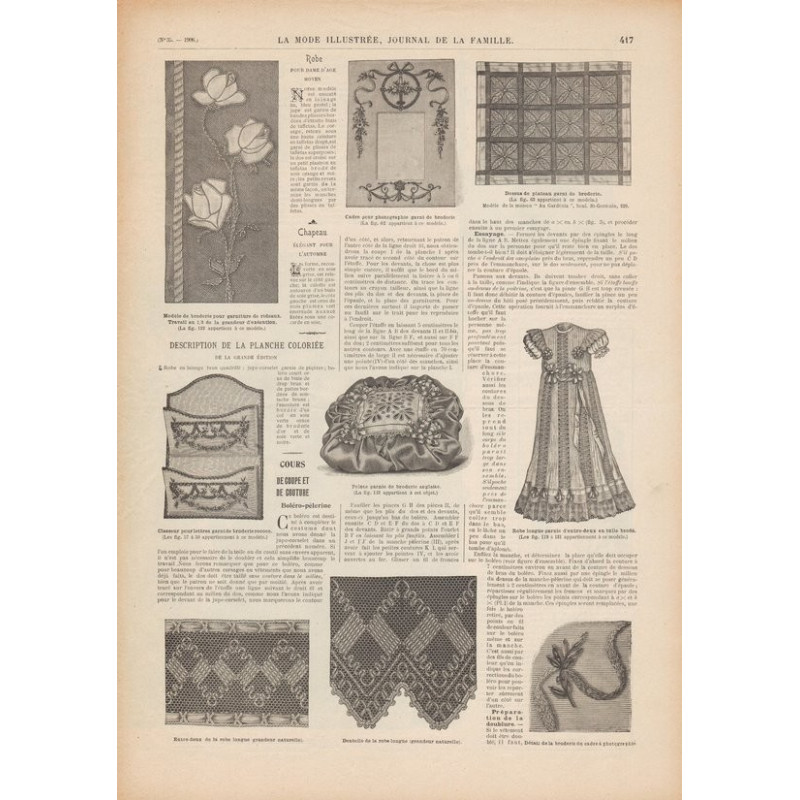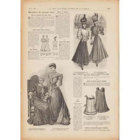 Chaque magazine présentait des modèles de robes , de lingerie , de corsets , mais aussi des vêtements d’enfants ou habits de poupées , avec de magnifiques gravures et les explications des modèles .
