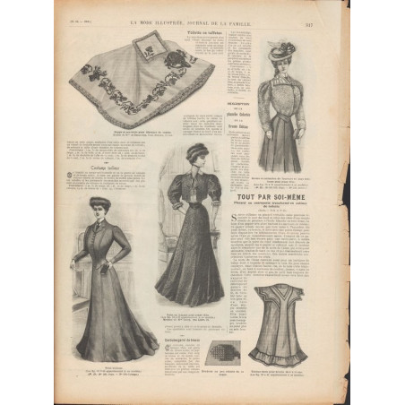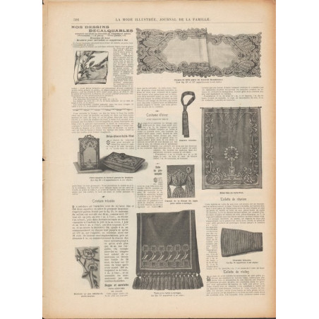 Chaque magazine présentait des modèles de robes , de lingerie , de corsets , mais aussi des vêtements d’enfants ou habits de poupées , avec de magnifiques gravures et les explications des modèles .