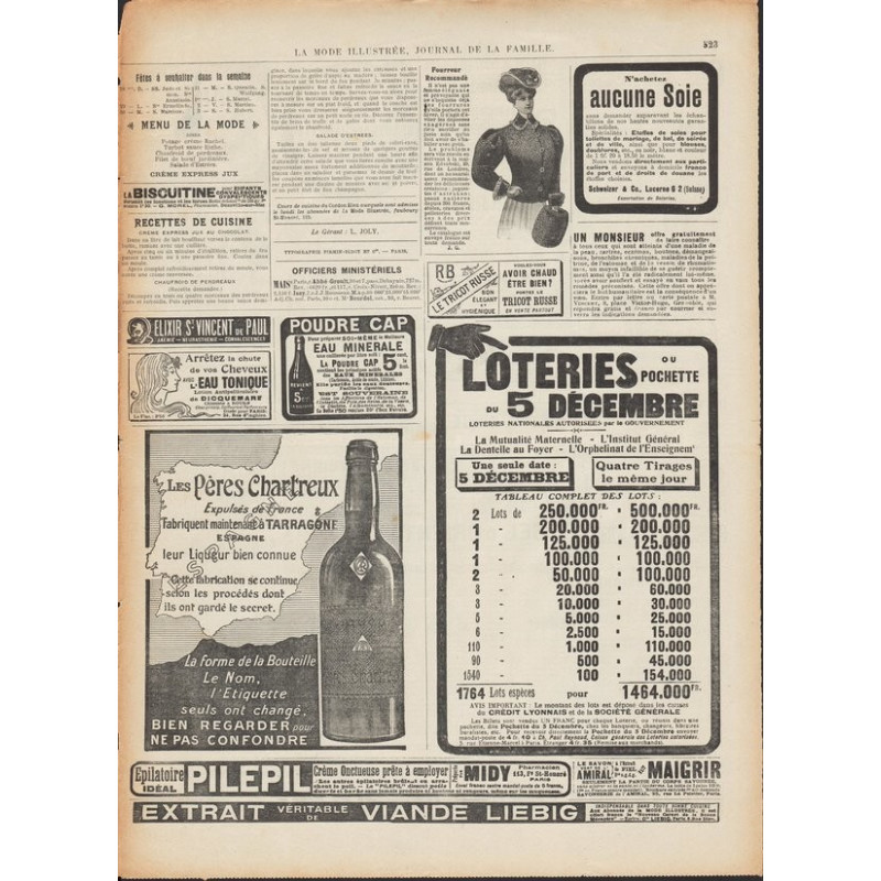 La Mode Illustrée paraissait toutes les semaines, et était accompagnée d’une planche de patrons tous les quinze jours en moyenne.