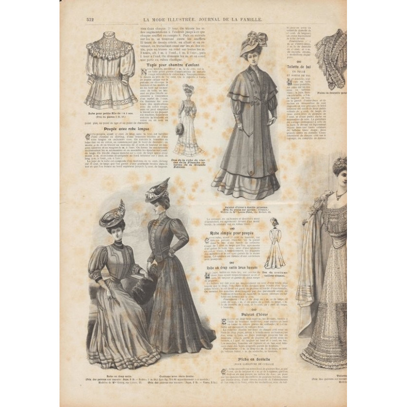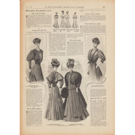 Chaque magazine présentait des modèles de robes , de lingerie , de corsets , mais aussi des vêtements d’enfants ou habits de poupées , avec de magnifiques gravures et les explications des modèles .
