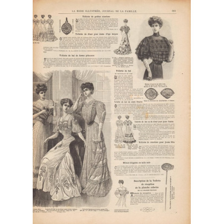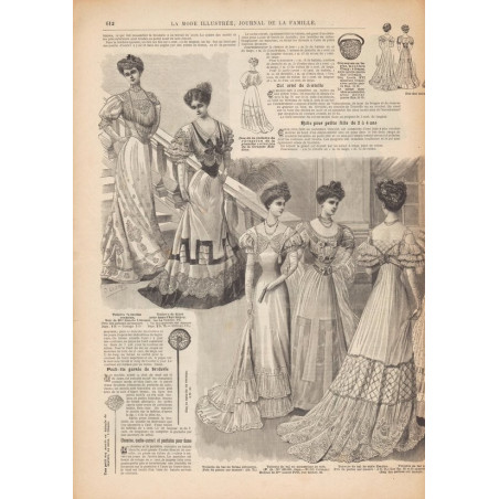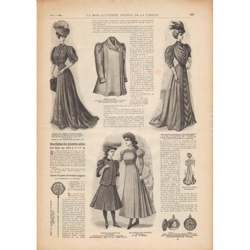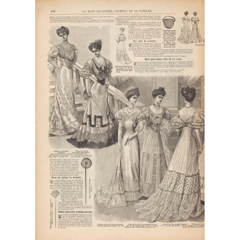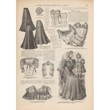 Chaque magazine présentait des modèles de robes , de lingerie , de corsets , mais aussi des vêtements d’enfants ou habits de poupées , avec de magnifiques gravures et les explications des modèles .