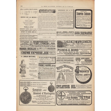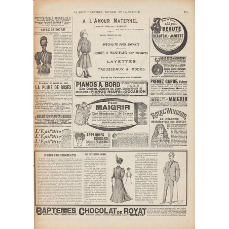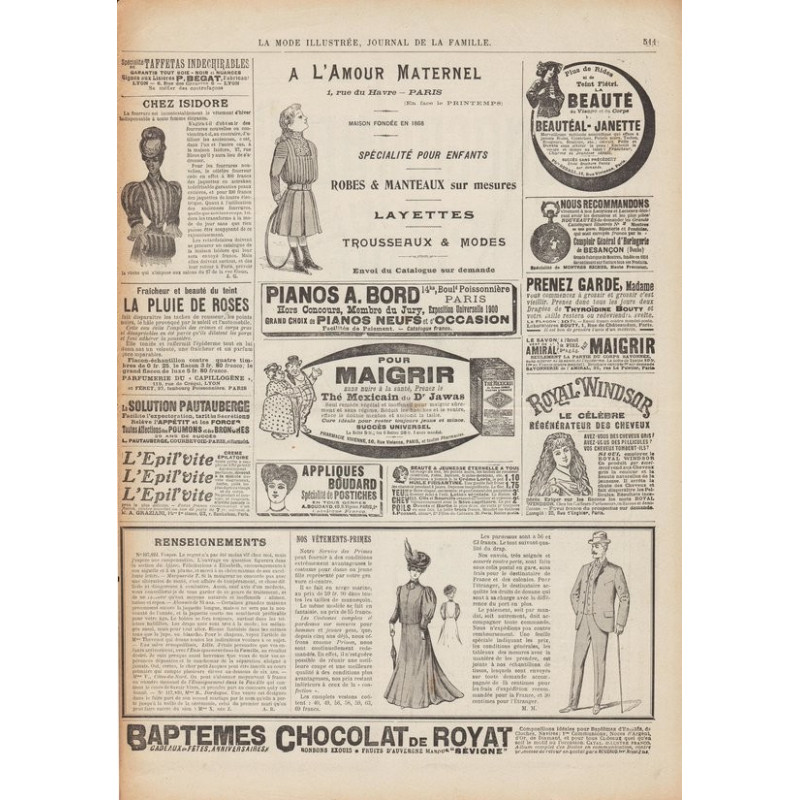 La Mode Illustrée paraissait toutes les semaines, et était accompagnée d’une planche de patrons tous les quinze jours en moyenne.