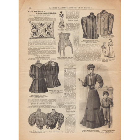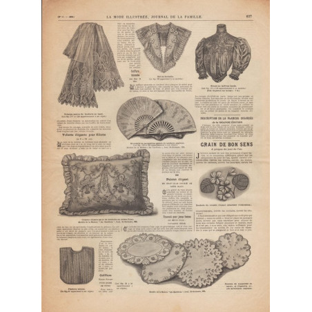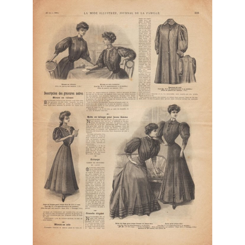 Chaque magazine présentait des modèles de robes , de lingerie , de corsets , mais aussi des vêtements d’enfants ou habits de poupées , avec de magnifiques gravures et les explications des modèles .
