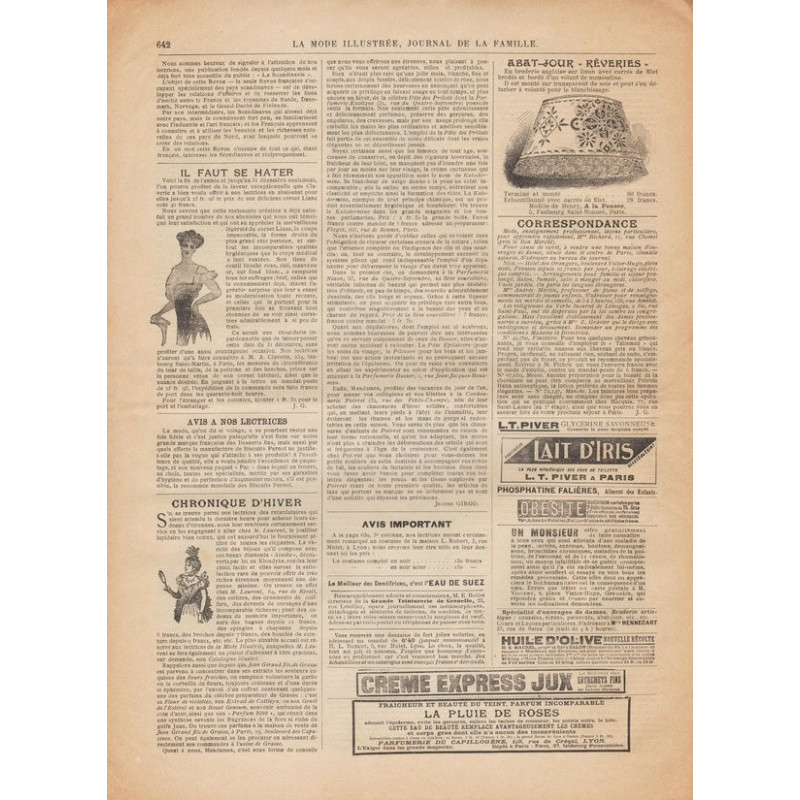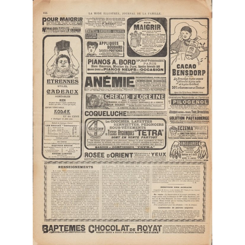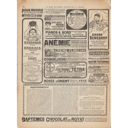 La Mode Illustrée paraissait toutes les semaines, et était accompagnée d’une planche de patrons tous les quinze jours en moyenne.